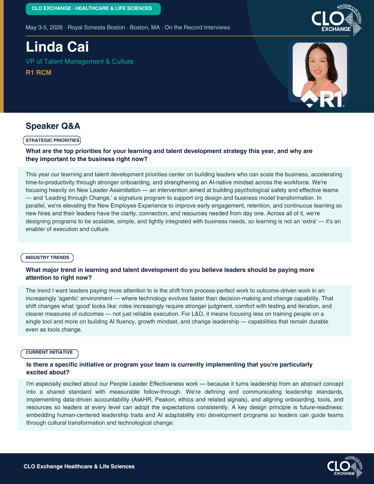 This edition brings together 60+ curated L&D executives to explore the strategies and innovations redefining modern learning, from data-informed decision-making and adaptive learning ecosystems to inclusive development, leadership excellence, and cultivating everyday learning cultures. Join the leaders who are redefining people development and discover how to build an agile, high-impact L&D function that is ready for the future of work
